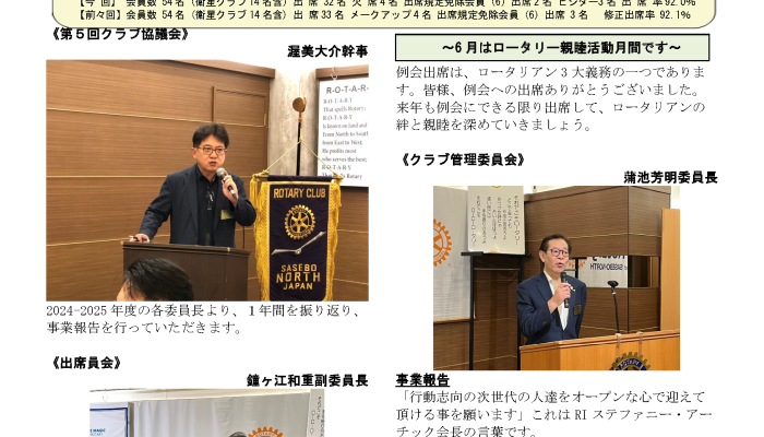 2024-2025年度6月16日開催 第1782回例会 週報