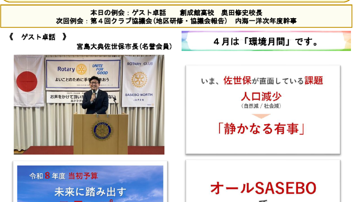 2025-2026年度4月27日開催 第1815回例会 週報